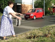 Kacsacsalád tévedt a nagy forgalmú úthoz. Az idősebb hölgy, hogy mentse az út közelében kolbászoló vadkacsa családot... saját biztonságát sem féltve terelte az útról vissza a tópartra az állatokat. Szabovik Géza kapta lencsevégre az egyik pillanatot, ahogyan a kacsa családot sikerült vissza terelni a fűbe. Az úttól nem messze van egy nádas - bokros tó... ahol az állatok már biztonságosan tudnak tovább lenni. Respect az életmentésért! Sajnos szinte minden hétre jut egy értelmetlen autós gázolás... ami most nem következett be, hála a hölgynek.